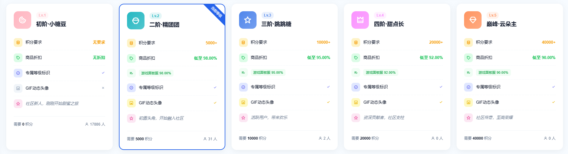 1.等级制度:根据积分数量划分等级,等级越高,购买商品的折扣越高,升级、续费同样享受折扣优惠!
